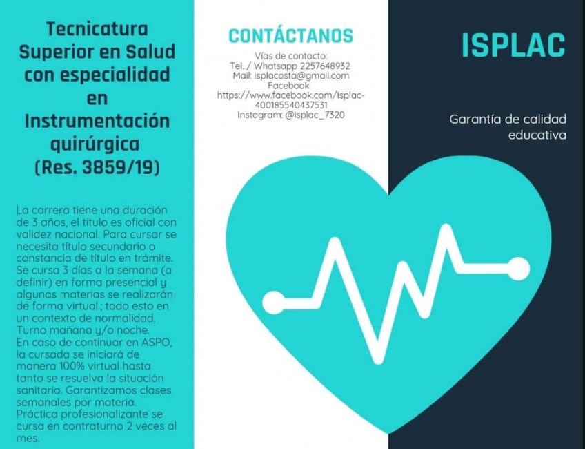 - Tecnicatura Superior en Salud con especialidad en Instrumentación quirúrgica (Res. 3859/19)