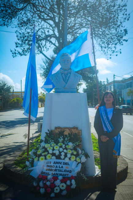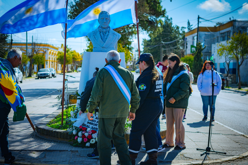 Esta tarde, a los pies del busto del General José de San Martín, en la intersección de las avenidas Mitre y San Martín, se realizó el acto conmemorativo por el aniversario del paso a la inmortalidad del Libertador. Al encuentro asistieron el intendente municipal acompañado por parte de su gabinete, autoridades de las fuerzas vivas, representantes de Prefectura, fuerzas policiales, bomberos voluntarios, concejales, consejeras escolares, autoridades educativas, abanderados y numeroso público que siguió la ceremonia.