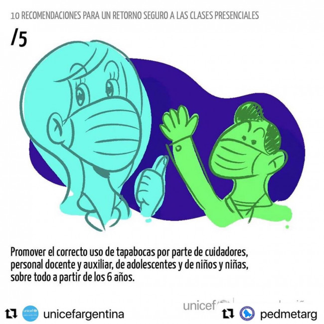 La Sociedad Argentina de Pediatría junto con el UNICEF elaboraron 10 recomendaciones para la seguridad del regreso a clases presenciales.