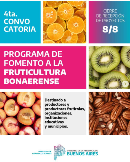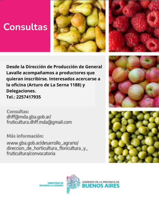 La Municipalidad de General Lavalle, a través del Área de Producción, informa que el 8 de agosto cierra la recepción de proyectos para el Programa de Fomento a la Fruticultura Bonaerense.