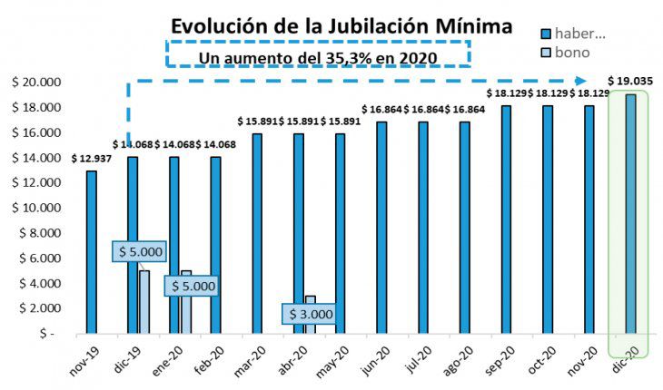 Con este aumento, la jubilación mínima quedará en los $19.035 y el año culminará con un incremento del 35,3%.