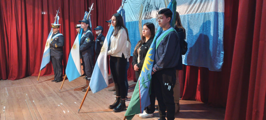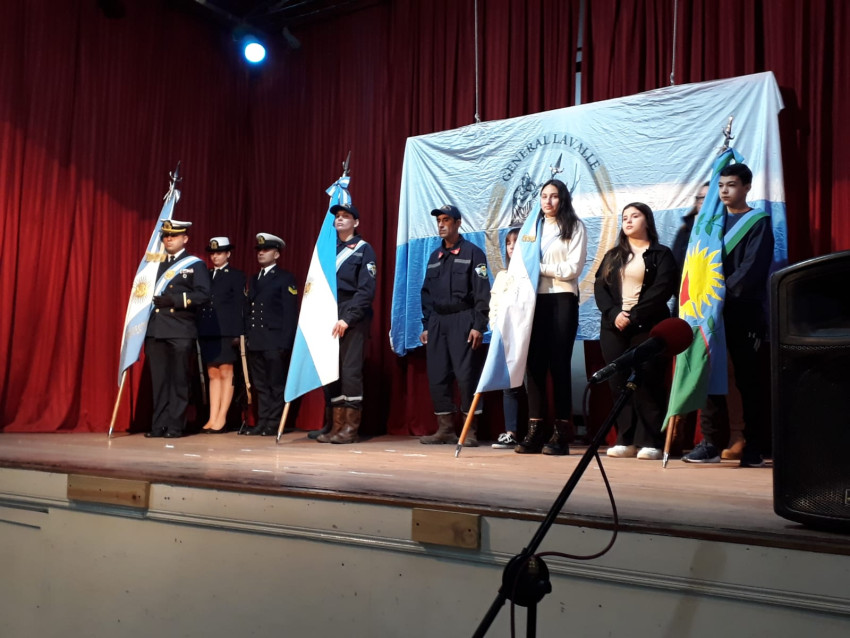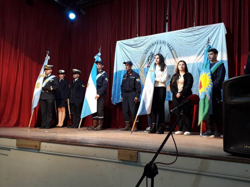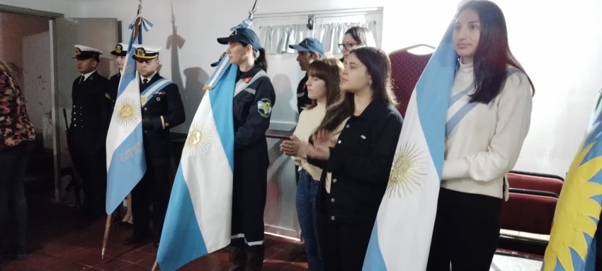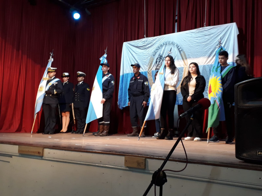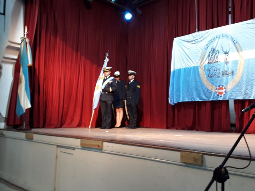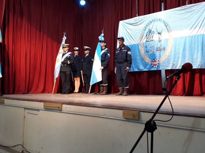 También estuvieron presentes en el lugar, el Prefecto Principal Fabricio Villanueva, la Diputada Nacional Marcela Passo, la policía abandera y los escoltas de Prefectura. También estuvieron los Bomberos Voluntarios y Escuela Secundaria N°1. Los integrantes del Gabinete y el Presidente del Consejo Escolar.