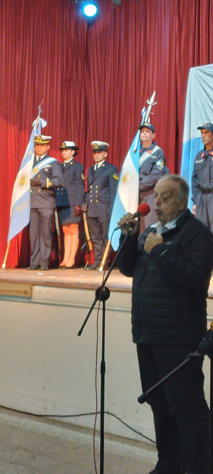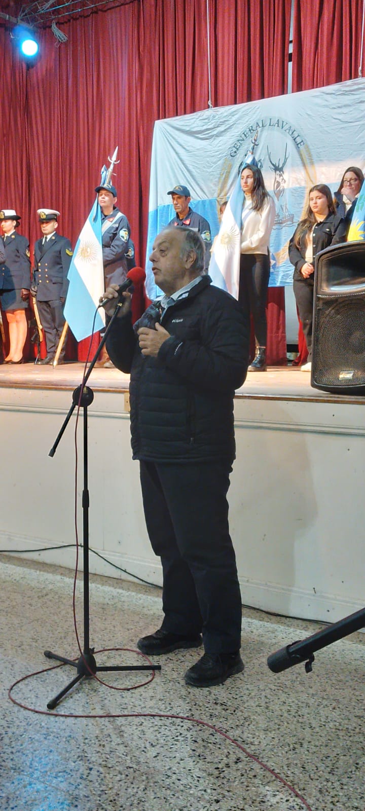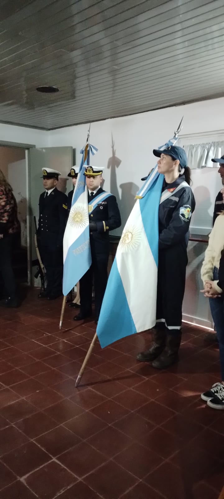 También estuvieron presentes en el lugar, el Prefecto Principal Fabricio Villanueva, la Diputada Nacional Marcela Passo, la policía abandera y los escoltas de Prefectura. También estuvieron los Bomberos Voluntarios y Escuela Secundaria N°1. Los integrantes del Gabinete y el Presidente del Consejo Escolar.