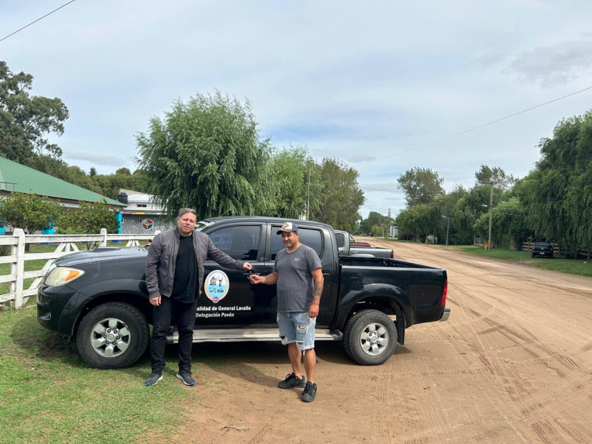 Gracias a la gestión del intendente Nahuel Guardia durante el pasado sábado se entregó una moderna camioneta Toyota Hilux al delegado del Paraje Pavón Gastón Derdoy.