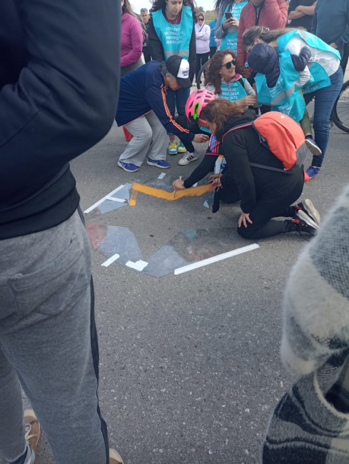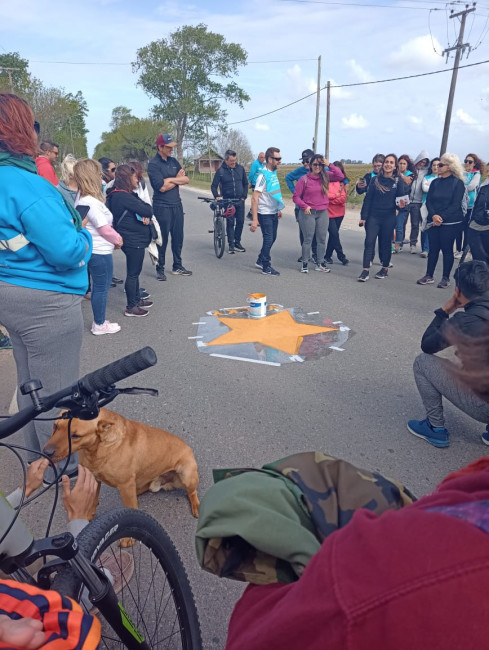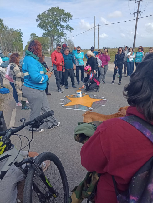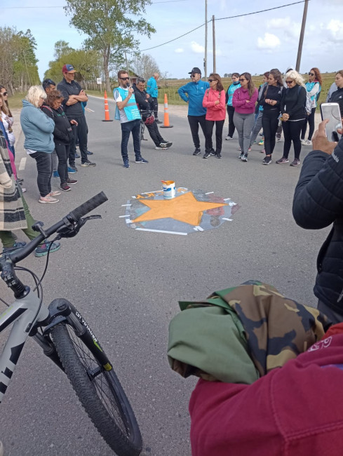Durante la jornada se pintó una estrella amarilla en el lugar del siniestro vial donde falleció la ciclista, en la Avenida Mitre e Isidro Fulco y también se colocó un cartel en el mismo lugar.