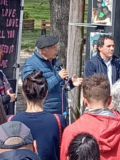 El encuentro fue en la Plaza Juan Galo de Lavalle. Pintaron una estrella amarilla en el lugar del siniestro y colocaron un cartel.