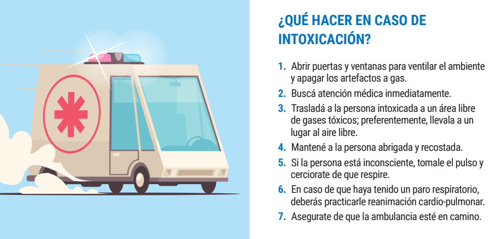 La insuficiente ventilación es un factor siempre presente en las intoxicaciones con monóxido de carbono, por lo que es muy importante la correcta evacuación de gases al exterior. Esto evitará la acumulación de gases tóxicos en el interior de las viviendas.