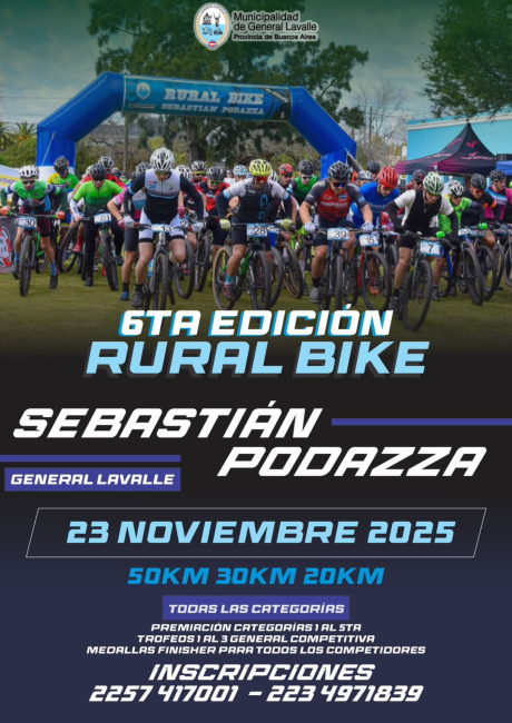 Se realizará la 6ª edición del Rural Bike “Sebastián Podazza” el domingo 23 de noviembre de 2025 en el partido de General Lavalle.