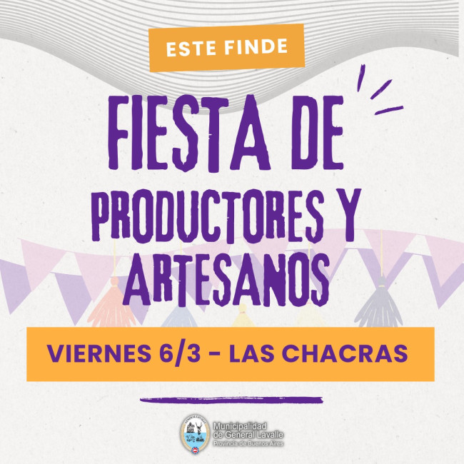 Este viernes 6 de marzo de 2026 se llevará a cabo la Fiesta de Productores y Artesanos en la localidad de Las Chacras, con una propuesta pensada para acompañar y fortalecer el trabajo de emprendedores locales.