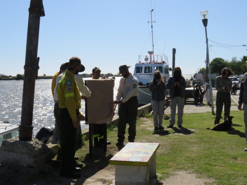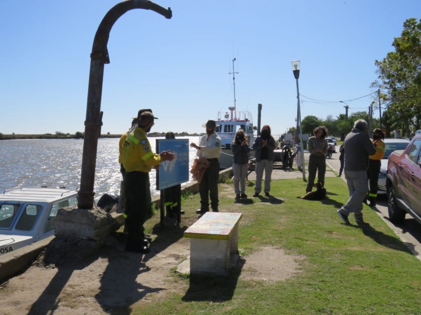 Por último, el intendente del Parque Nacional Campos del Tuyú, Mario Beade, anunció que todos los parques del país colocarán un cartel que indicará la distancia en la que se encuentra ese punto de las Islas. Por eso, invitó a todos a desplazarse unos metros para mostrar el que ya se había colocado a metros del ingreso al puerto y que marca que la Ría de Ajó está a 1700 kilómetros de Malvinas.