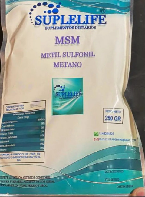 El “Metil Sulfonil Metano”, comercializado en este caso por la marca Suplelife, es un sustancia química que se encuentra en el cuerpo humano y también en ciertas plantas utilizada para la osteoartritis, la inflamación, y el envejecimiento de la piel, aunque sin mucha evidencia científica, según la biblioteca Medline Plus. En tanto, el “Ácido Ascórbico Vitamina C”, de la misma firma, es un antioxidante recetado solo para aquellas personas que por alguna razón tienen una deficiencia en su dieta. Su ingesta es necesaria para ayudar a la cicatrización de las heridas, mejorar la absorción de hierro de los alimentos vegetales y apoyar el sistema inmunológico.