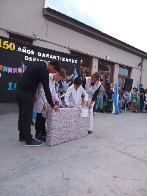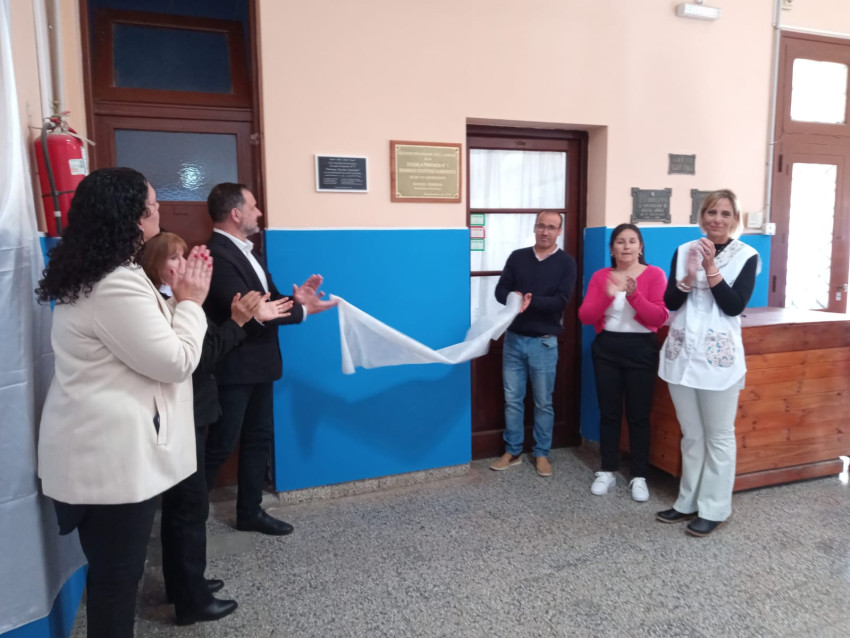 La comuna donó un televisor, entregó un presente a los maestros por su dedicación y la placa conmemorativa fue descubierta por el Presidente del HCD y la Presidenta del Consejo Escolar, Luciano García y Karina Guardia respectivamente.