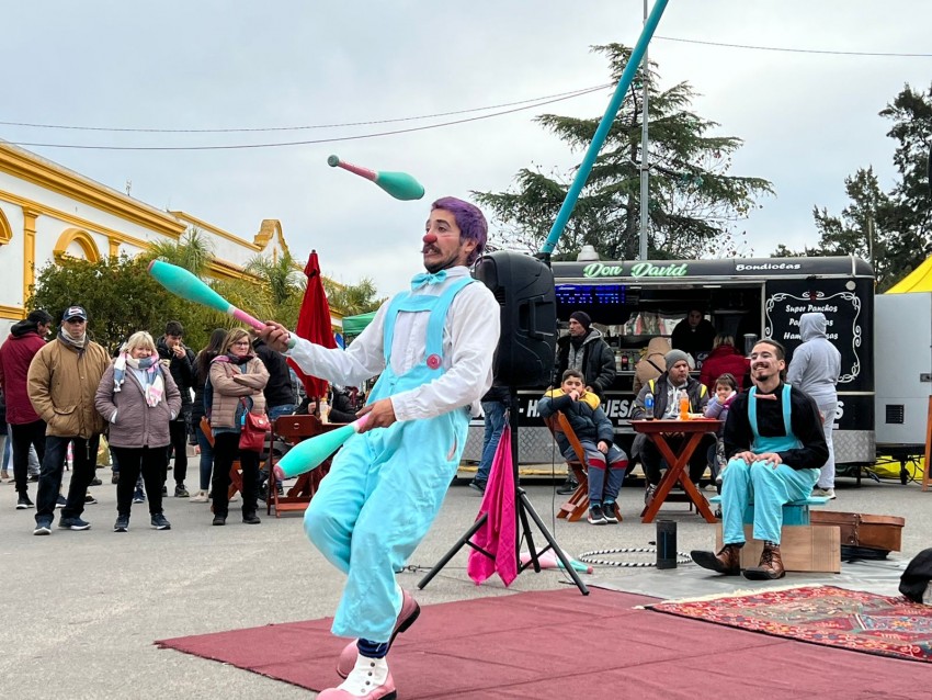 A metros del Municipio se montó un espectáculo circense que, hasta pasadas las 17 horas, demostró la destreza y el humor de los payasos.
