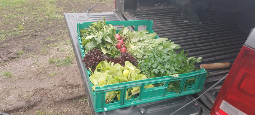 La Huerta del Vivero Municipal comenzó a dar sus primeros resultados. En las últimas horas se cosecharon lechuga criolla, lechuga morada, espinaca, perejil, acelga y rabanitos que fueron recolectados y donados al comedor del Hospital Municipal para la elaboración de alimentos del centro asistencial y del Asilo de Ancianos.