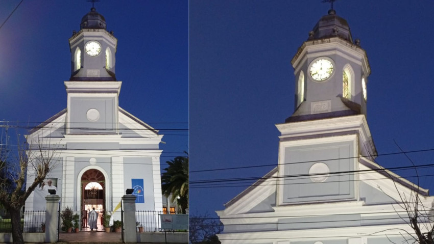 Las tareas incluyeron la iluminación exterior del templo, la reparación total de barandas y el reacondicionamiento de la escalera que conduce al campanario.