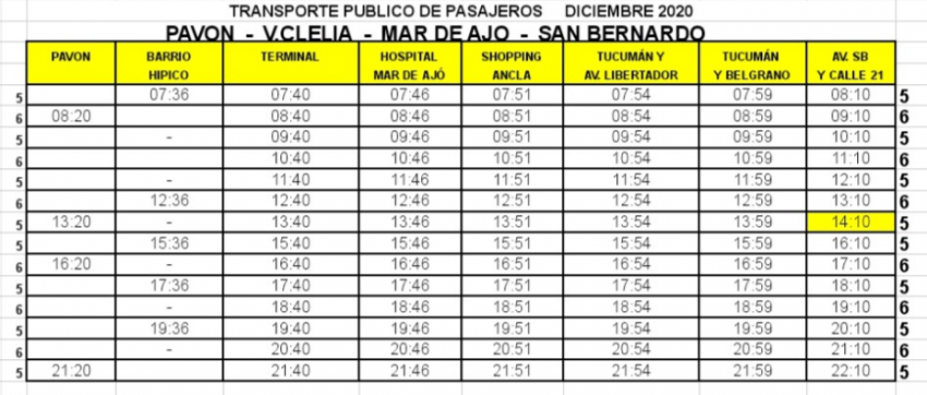 Pavón: Conocé los nuevos horarios de circulación del servicio de transporte público