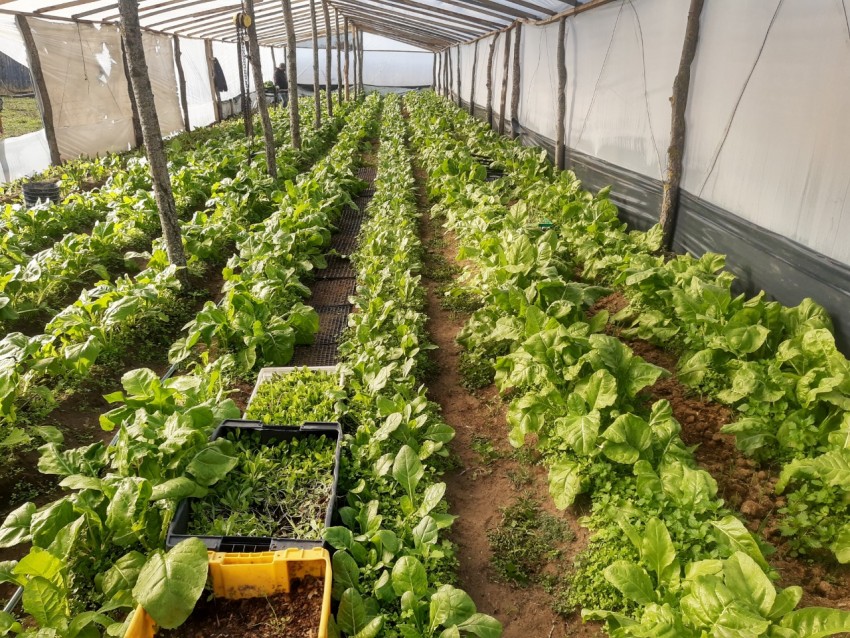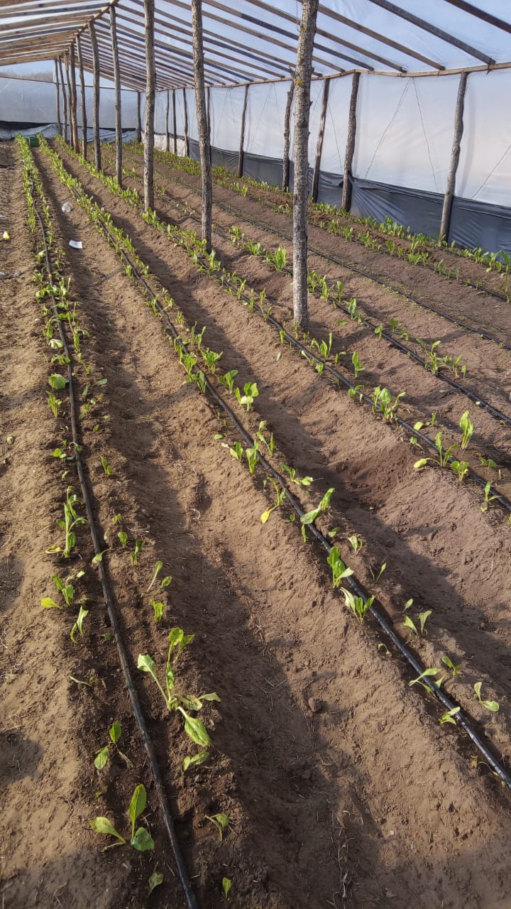 La mayoría de los cultivos los están haciendo a campo a cielo abierto, pero están empezando a incorporar en pequeñas escalas invernáculos para lograr sortear las condiciones climáticas externas propias de la época, acortar los periodos de cultivo, y obtener mayor rendimiento del mismo. Esto es en lechugas pasar de 60 a 45 días a cosecha, acelga pasar de 90 a 70 días. Todo sujeto a los manejos y la oportunidad de riego que realicen.