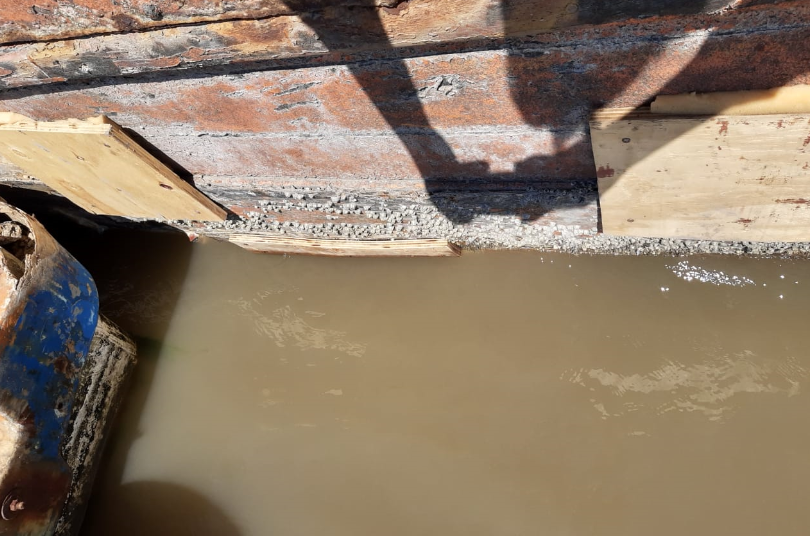 La estanqueidad como efecto de la ausencia de vías de agua mal selladas, así como el estado estructural del casco entre otras condiciones de flotabilidad- fueron inspeccionadas por personal de la Prefectura Naval Argentina que, en el marco de sus competencias como Autoridad Marítima, verificó que el mismo reuniera las condiciones de seguridad de la navegación adecuadas para su traslado.