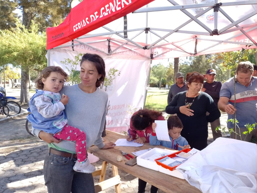 La actividad tuvo lugar en la Plaza Juan Galo, donde desde las 10 de la mañana se distribuyeron distintas especies como paraíso, espinillo y braquiquito.
