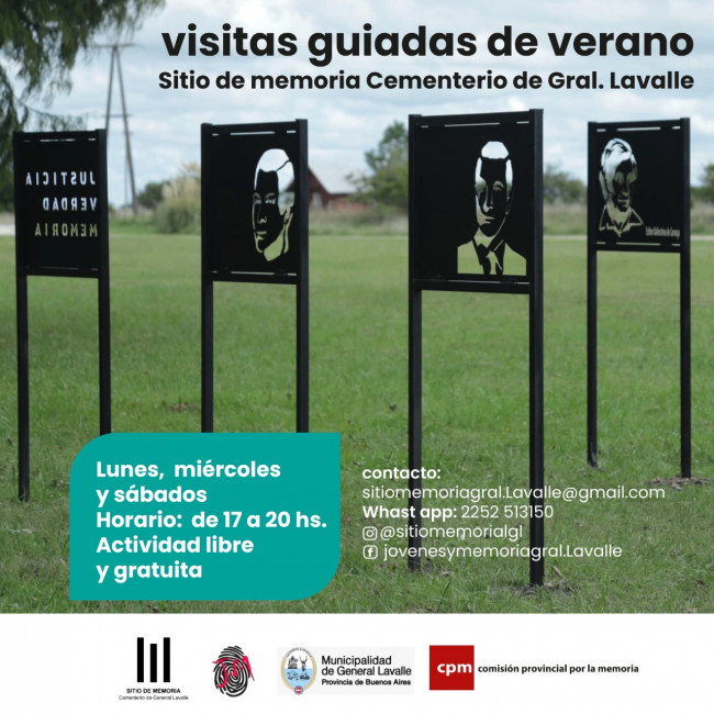 La Municipalidad de General Lavalle, a través de la Dirección de Turismo y Producción informó que durante el verano habrá visitas guiadas por el Cementerio Municipal de General Lavalle para conocer el Sitio de Memoria.