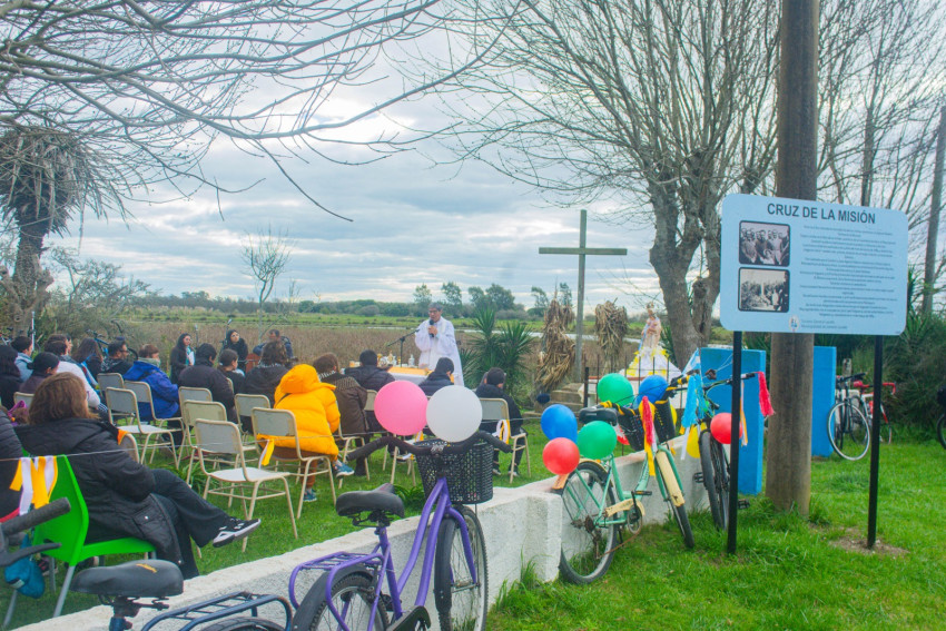 La peregrinación en bicicleta comenzó en la Parroquia, recorrió el predio del CEA —donde se encuentra la histórica Cruz de la Misión— y finalizó nuevamente en el templo. Allí los participantes pudieron conocer la nueva señalética histórica, participar de una misa de campaña y compartir un momento de espiritualidad comunitaria.